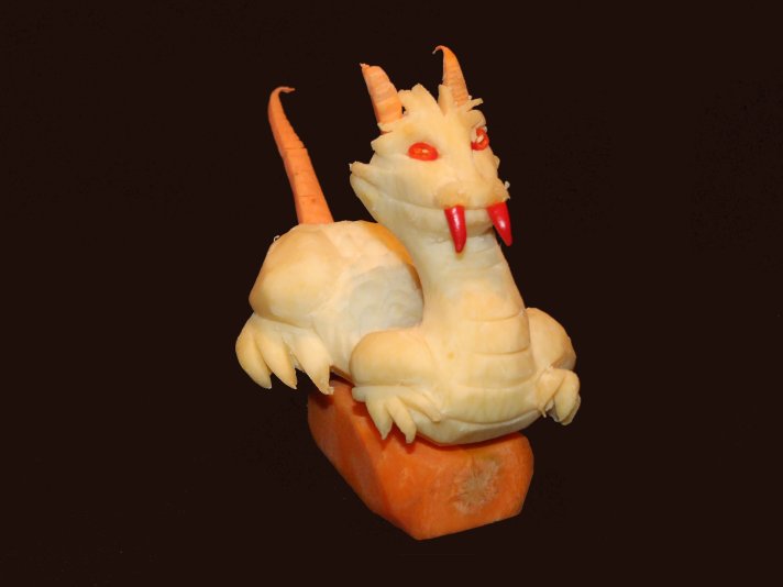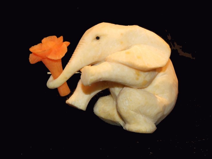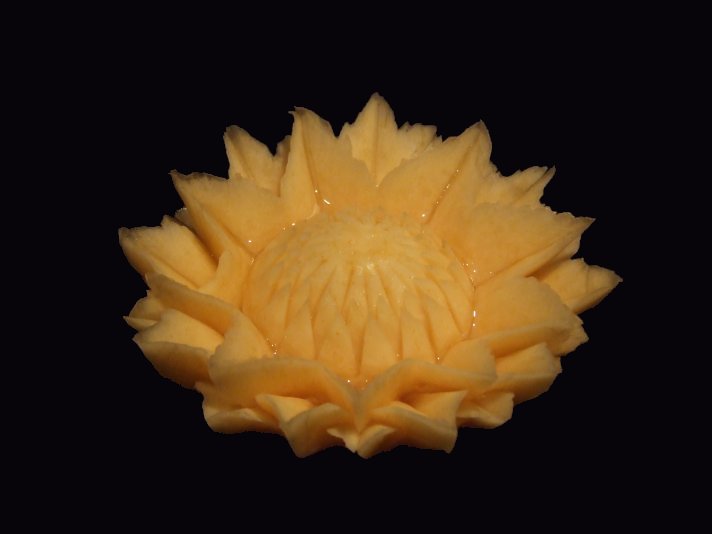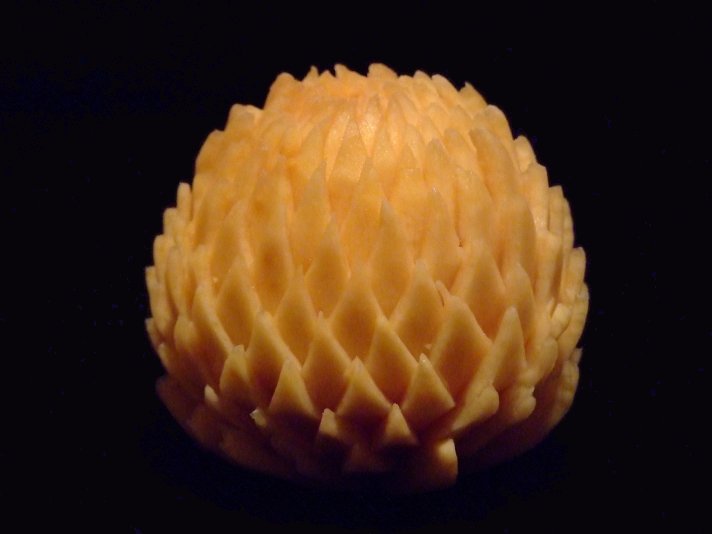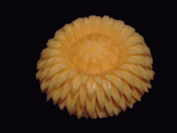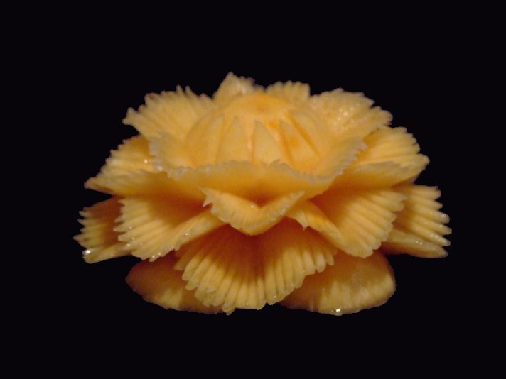Our chefs are also skilled in the traditional Thai art of fruit and vegetable carving. The tradition dates from the time of the poet King Rama II (1809-1824) who was responsible for a renaissance in Thai arts and culture. The King wrote a poem in which he told the story of a queen who had been banished from the palace by a rival. Disguised as a kitchen maid, she returned to the palace and managed to contact her son by carving scenes from her life on each piece of marrow for a marrow soup, which he was to eat. Her son recognised the scenes and went to the kitchen where he found his missing mother and she was reinstated. And so the tradition of carving vegetables was born.